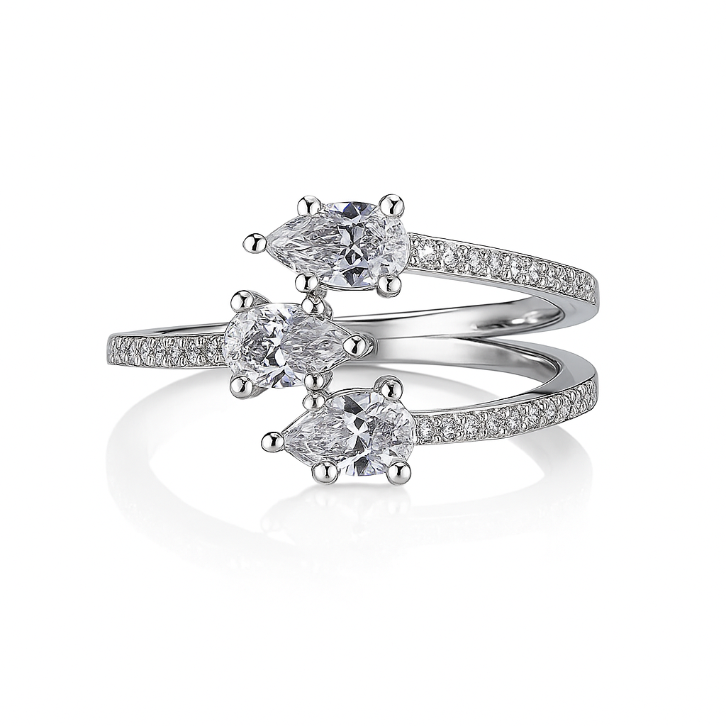 טבעת יוקרתית בעיצוב מיוחד משובצת 3 זירקונים נוצצים בחיתוך טיפה