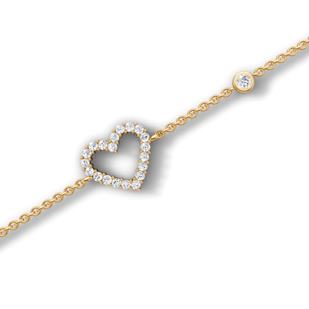 צמיד גמיש עשוי זהב עם תליון לב ותליון יהלום