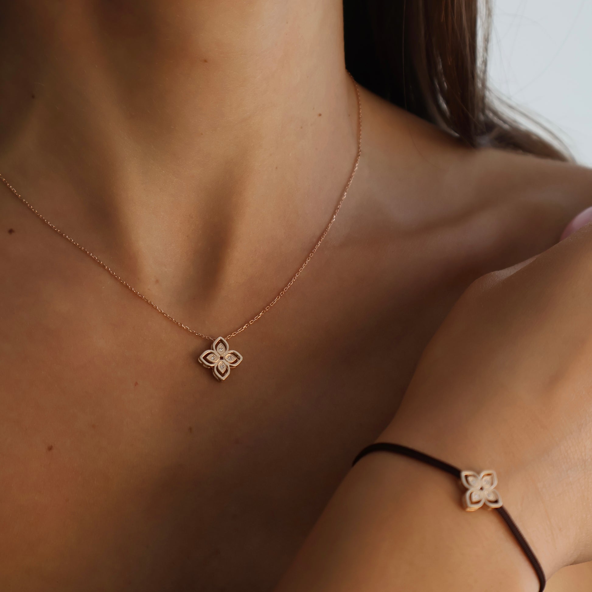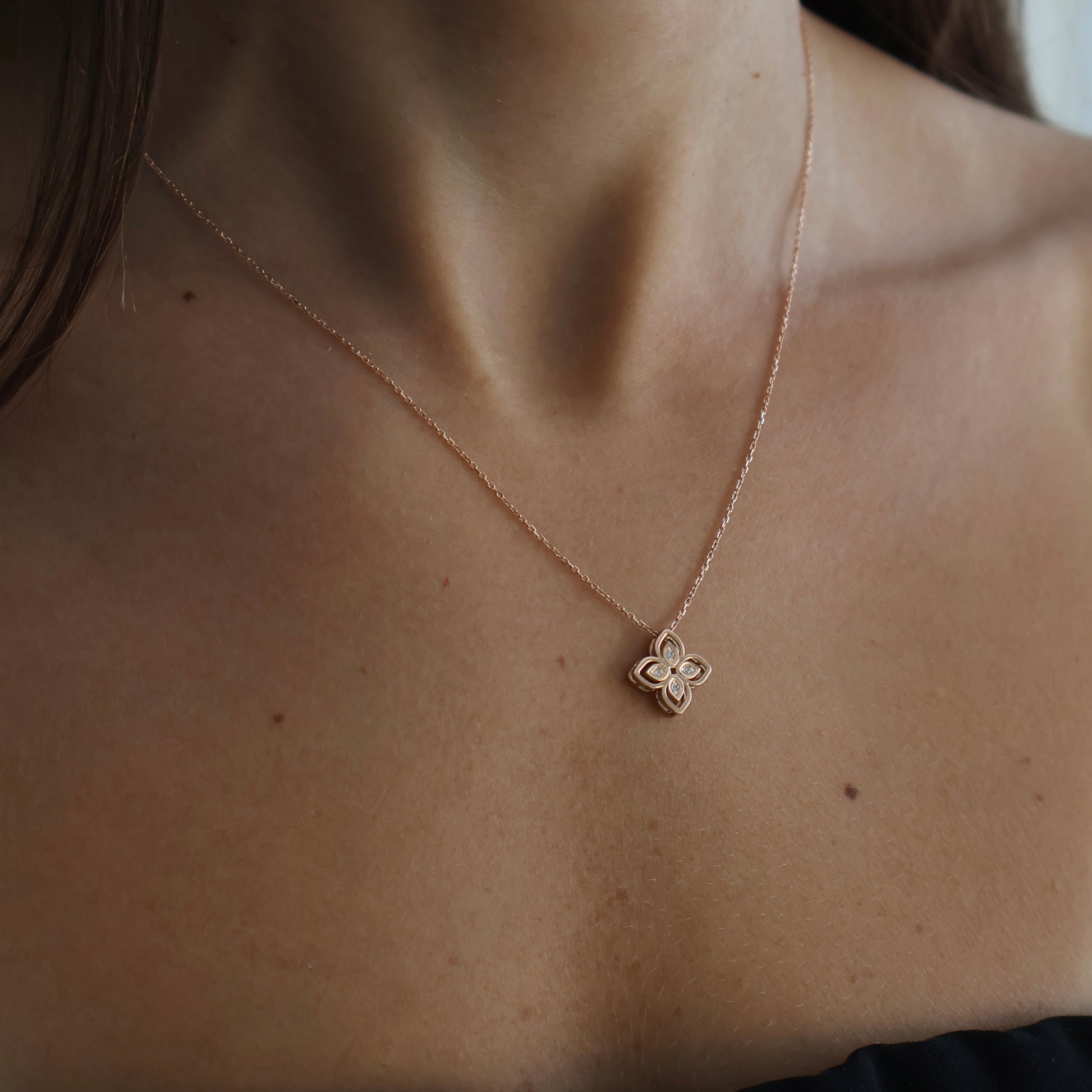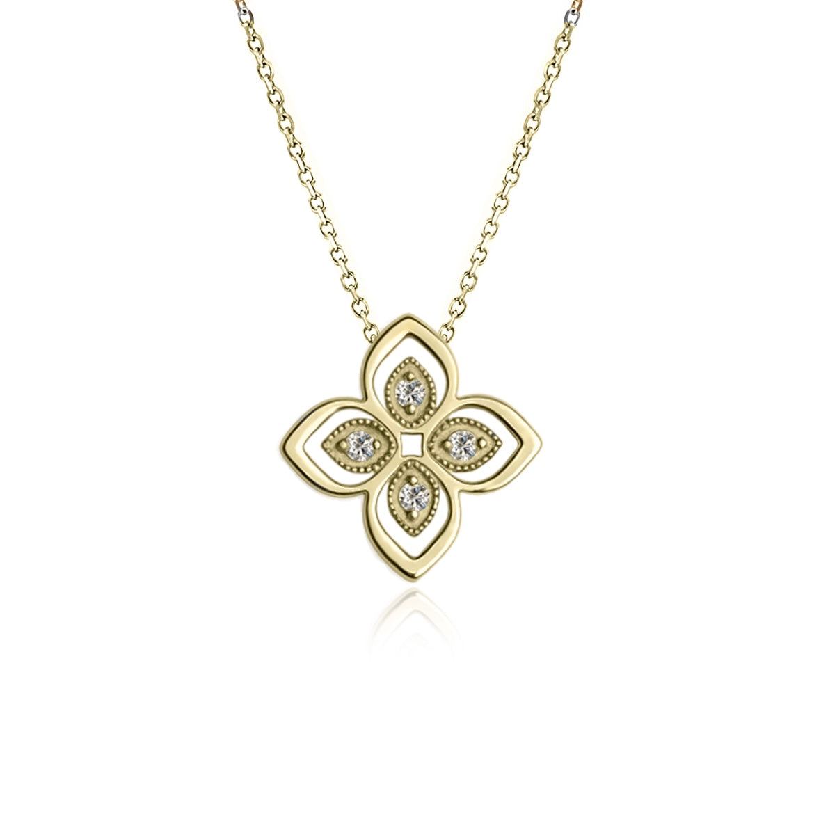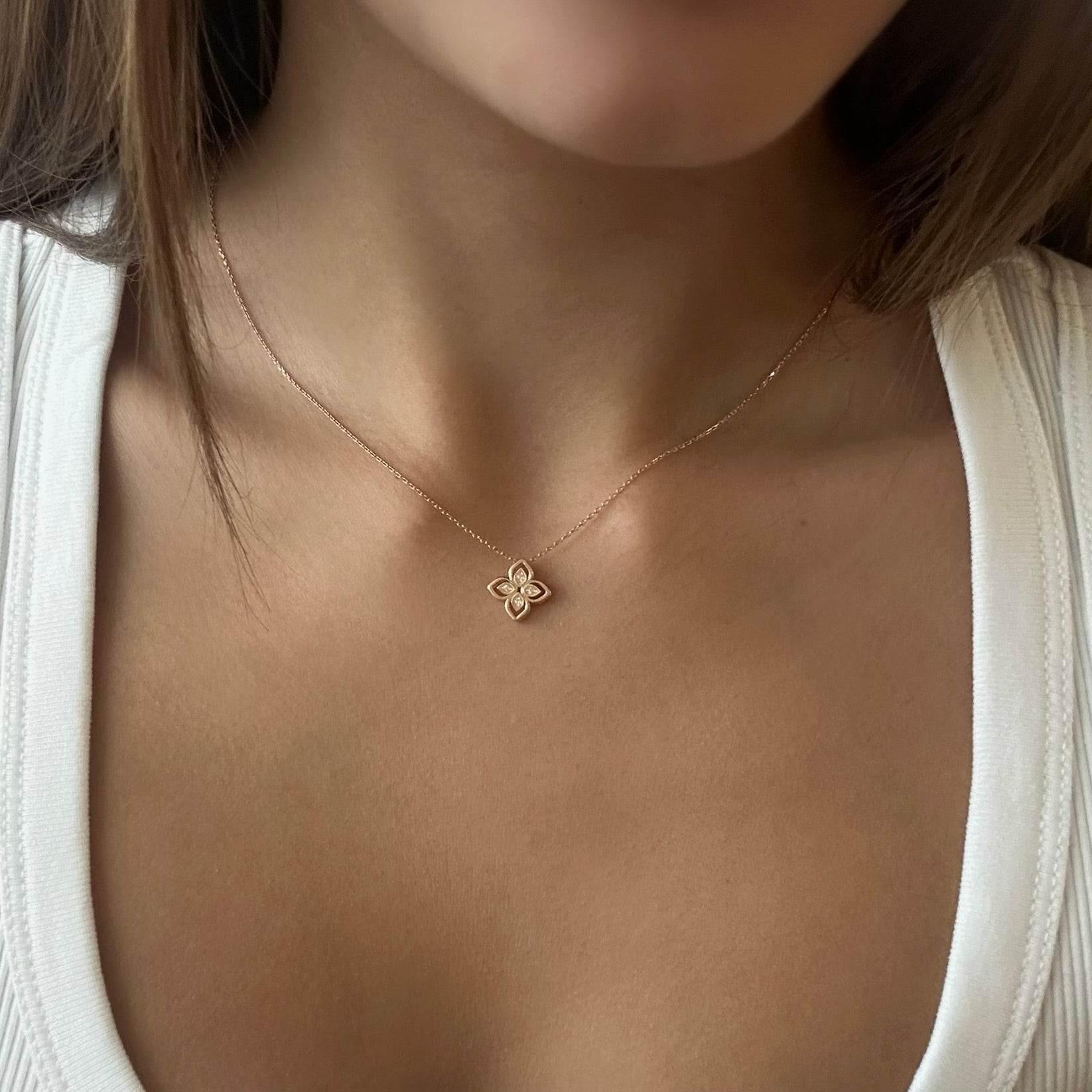 שרשרת זהב עם תליון תלתן משובצת יהלומים טבעיים